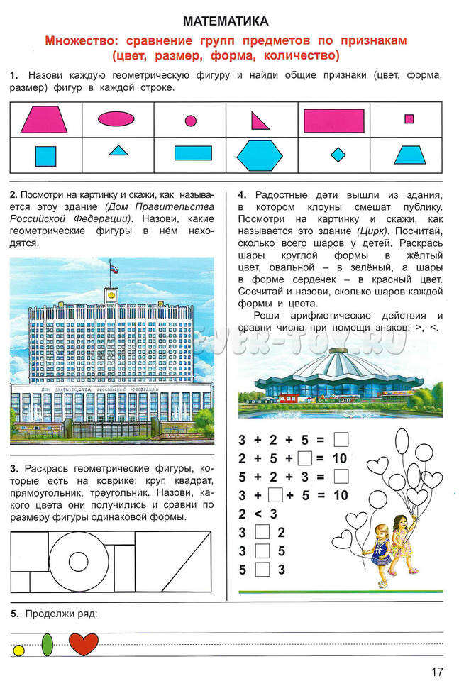 7. Математика (Множество: сравнение групп предметов по признакам (цвет размер, форма, количество)).