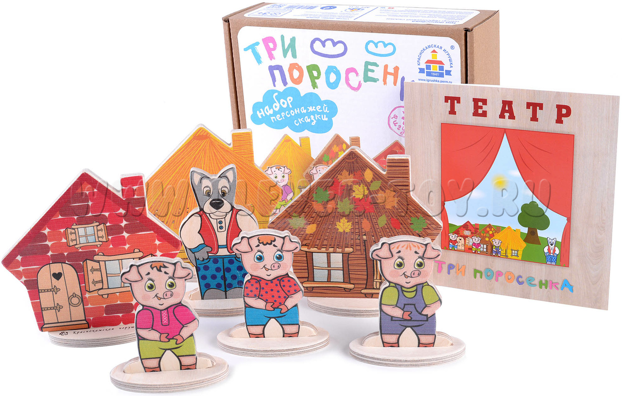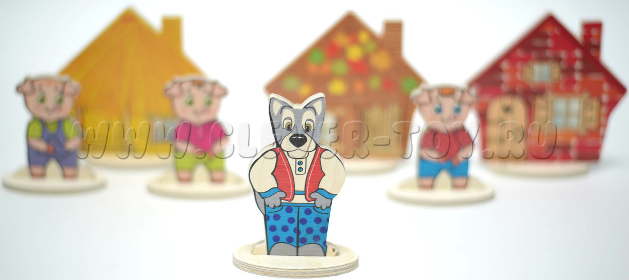 Набор деревянный "Персонажи сказки Три поросенка" (остатки)