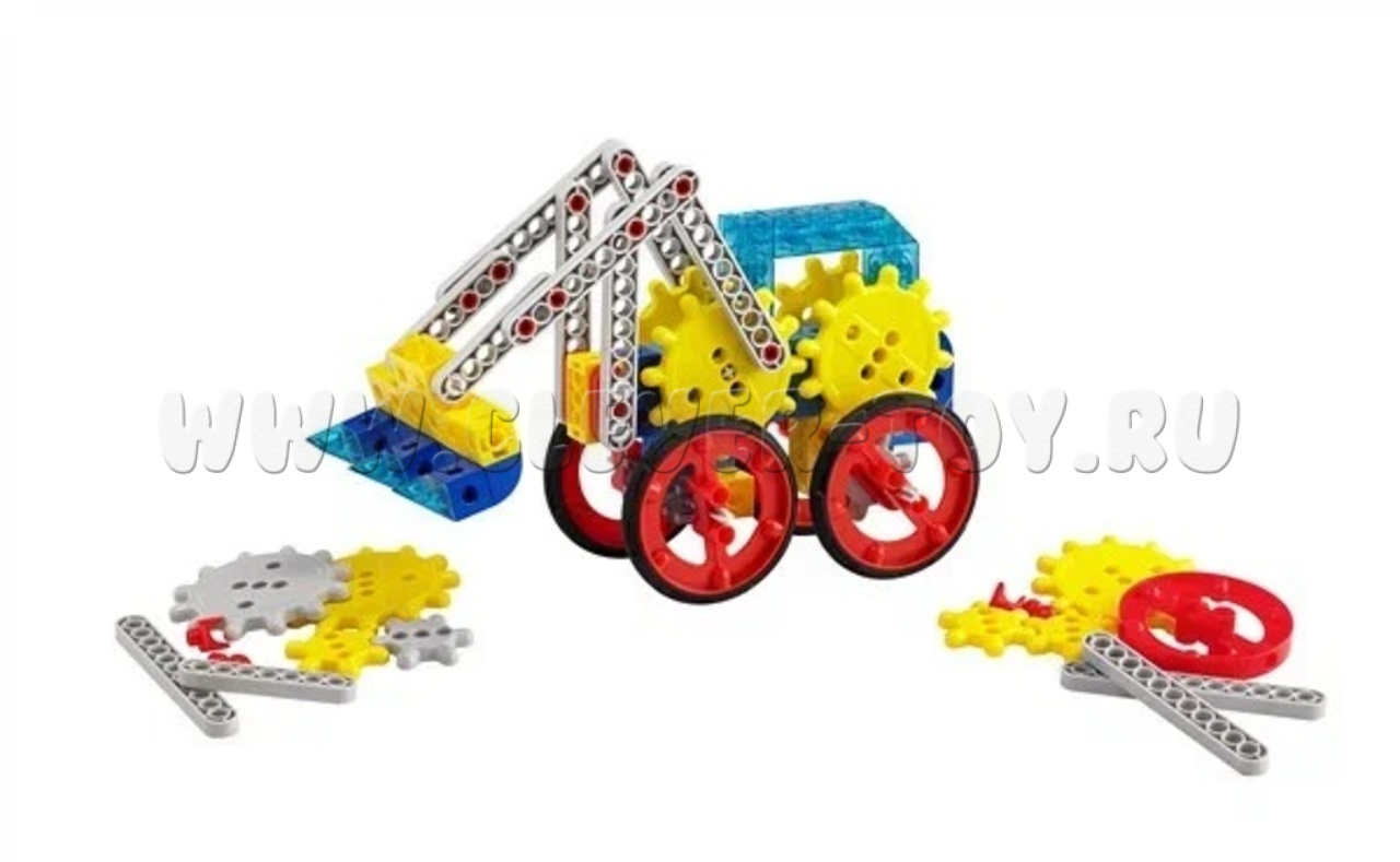 В набор входят:118 элементов, включая в себя прочные пластиковые шестерни, кубики, колеса, оси и др, инструкция по использованию на англ/яз.