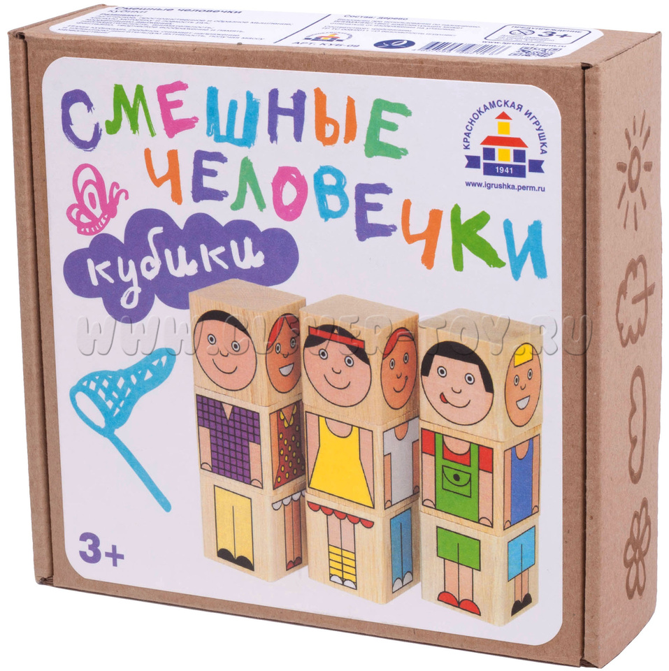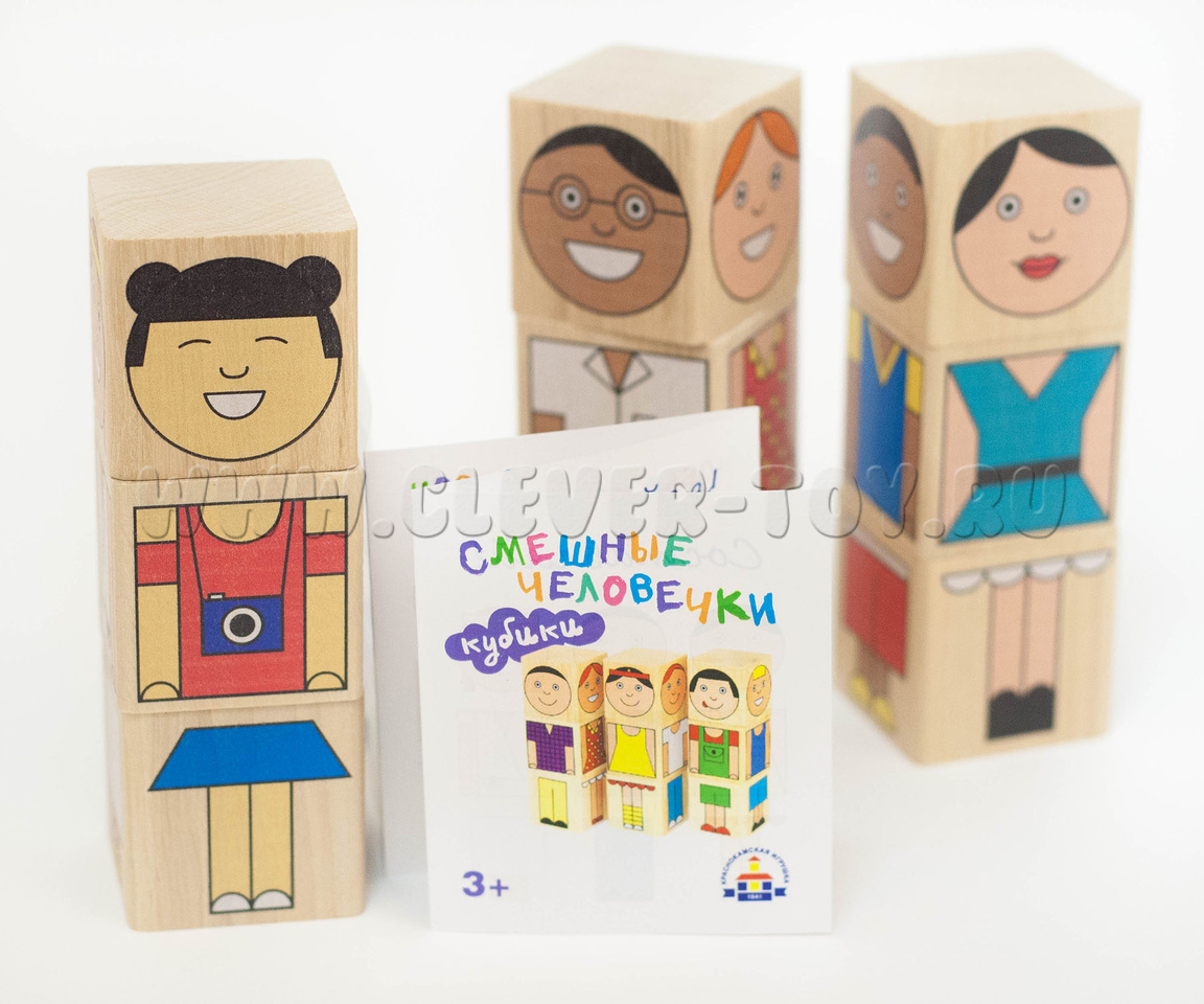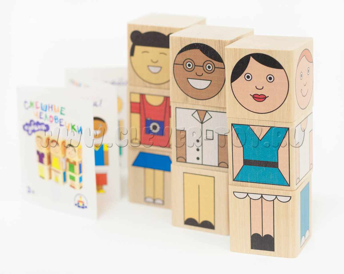 Кубики "Смешные человечки" - это 9 деревянных кубиков, на которых нанесены яркие и забавные изображения человечков: