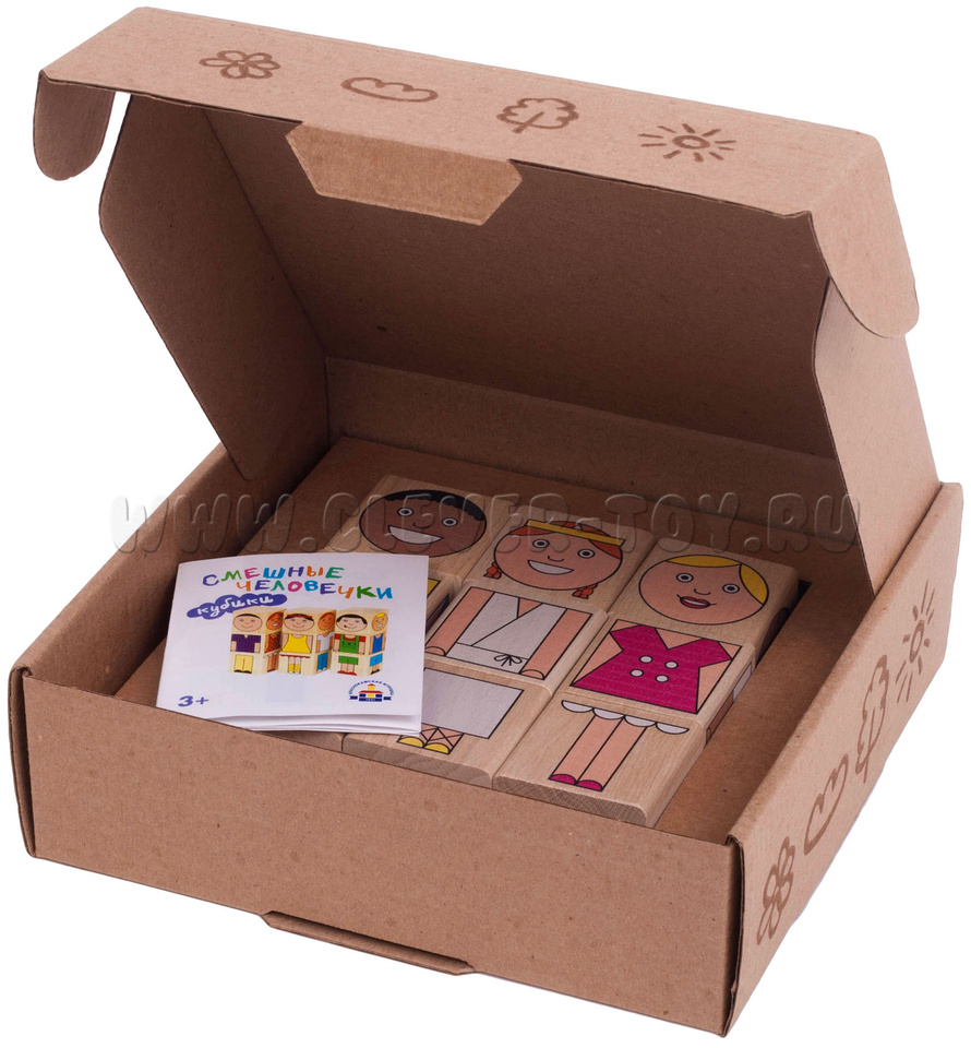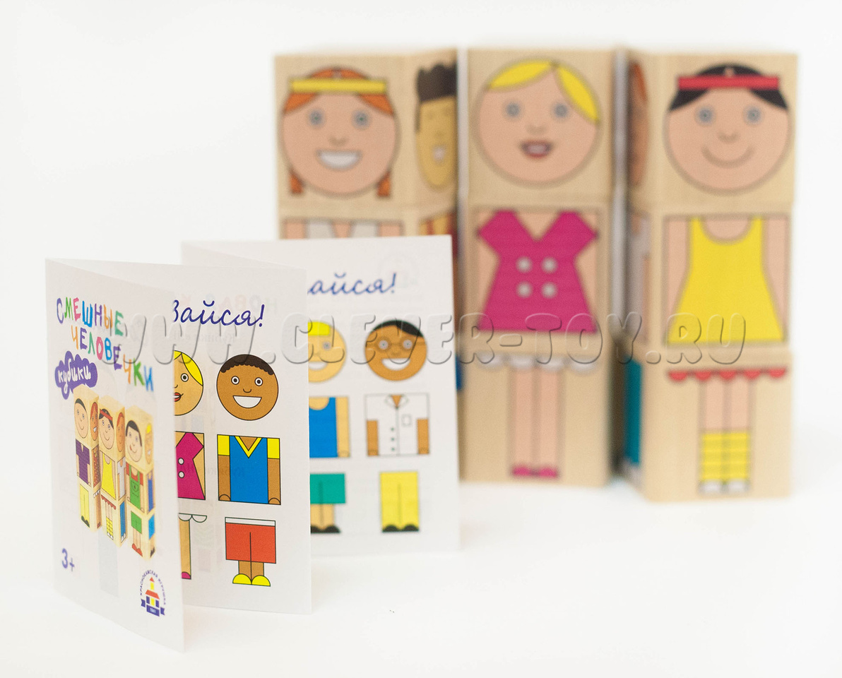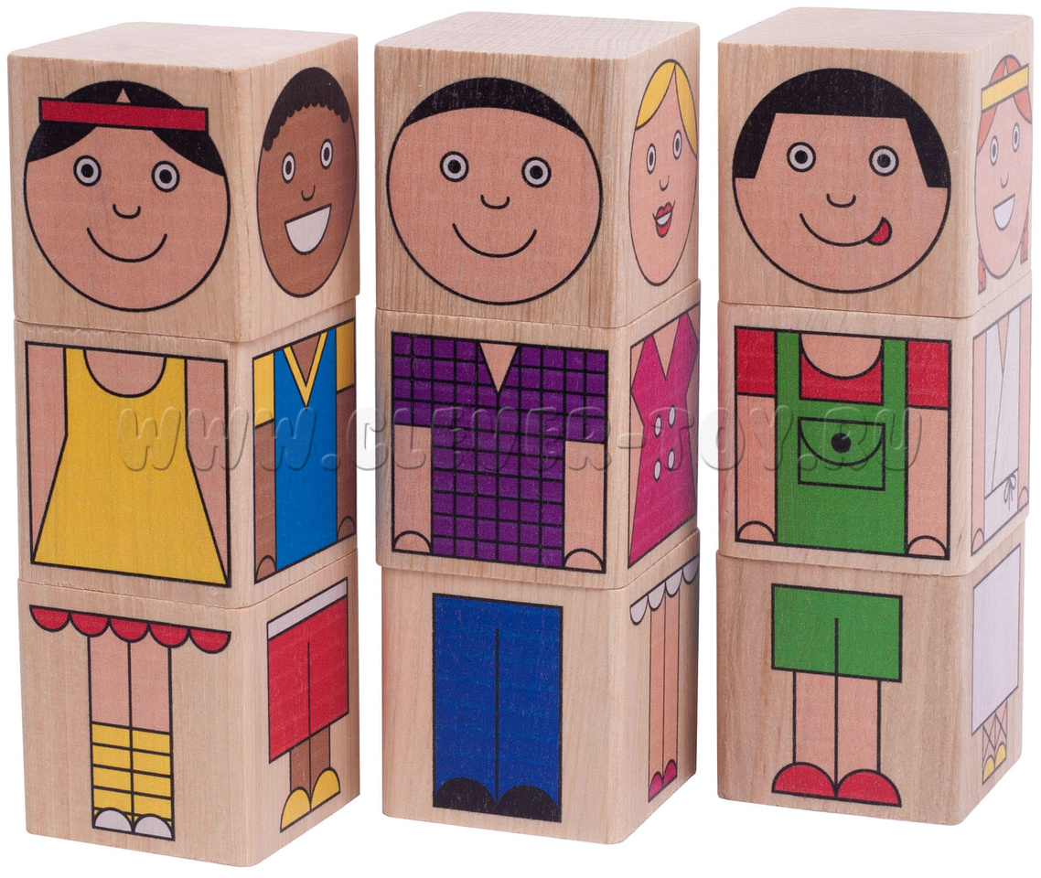 Кубики "Смешные человечки" - это 9 деревянных кубиков, на которых нанесены яркие и забавные изображения человечков: