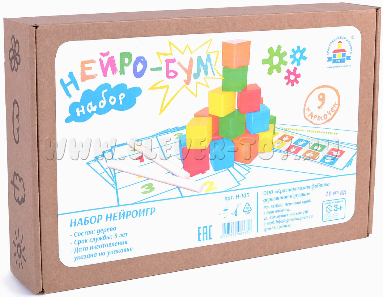 Набор нейроигр (20 деревянных кубиков, карточки с заданиями)