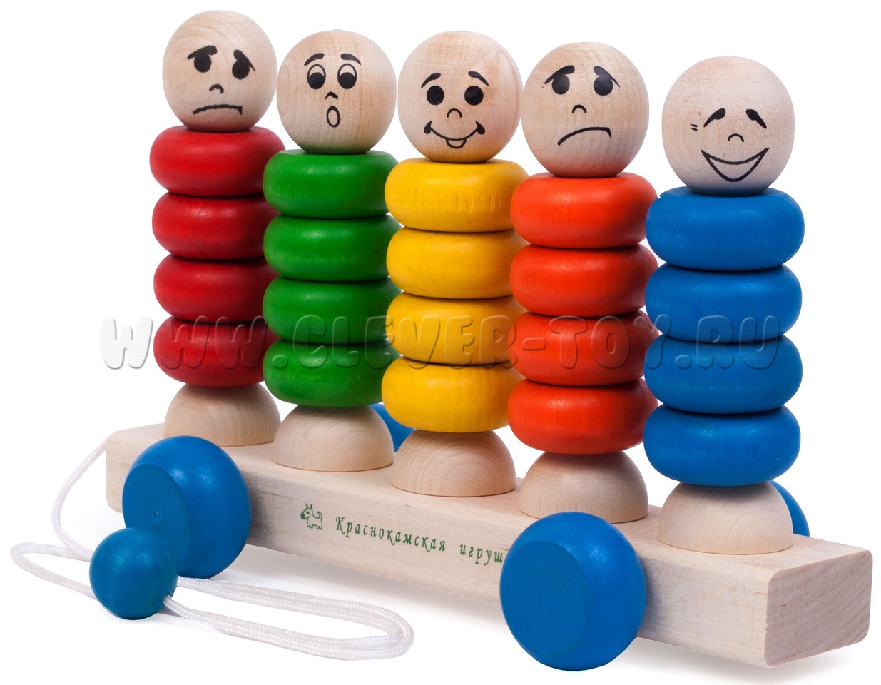 Игра предназначена для детей с 1 года. Многофункциональная занимательная игрушка. Может использоваться как каталка и пирамидка, а так же для шнурования бусиков и для изучения элементарных человеческих чувств.