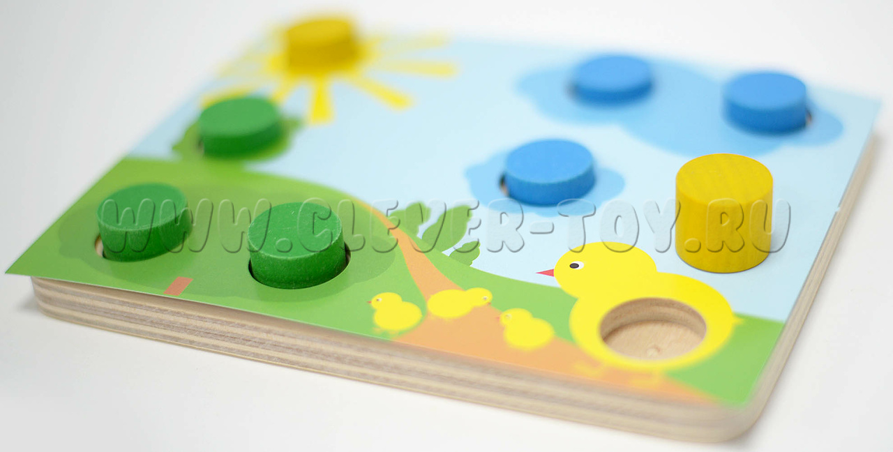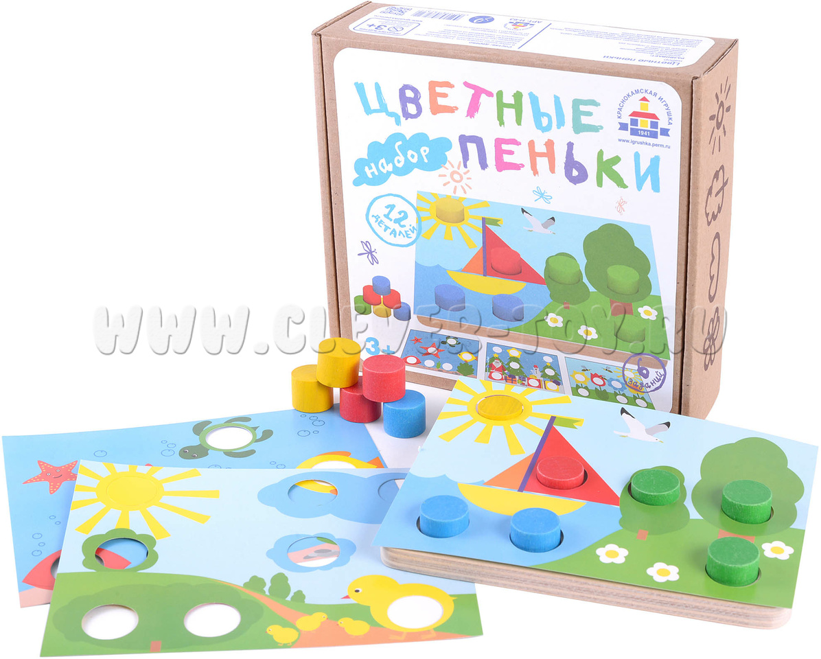Игра с набором "Цветные пеньки" способствует изучению цвета, повышению усидчивости и сосредоточенности внимания.