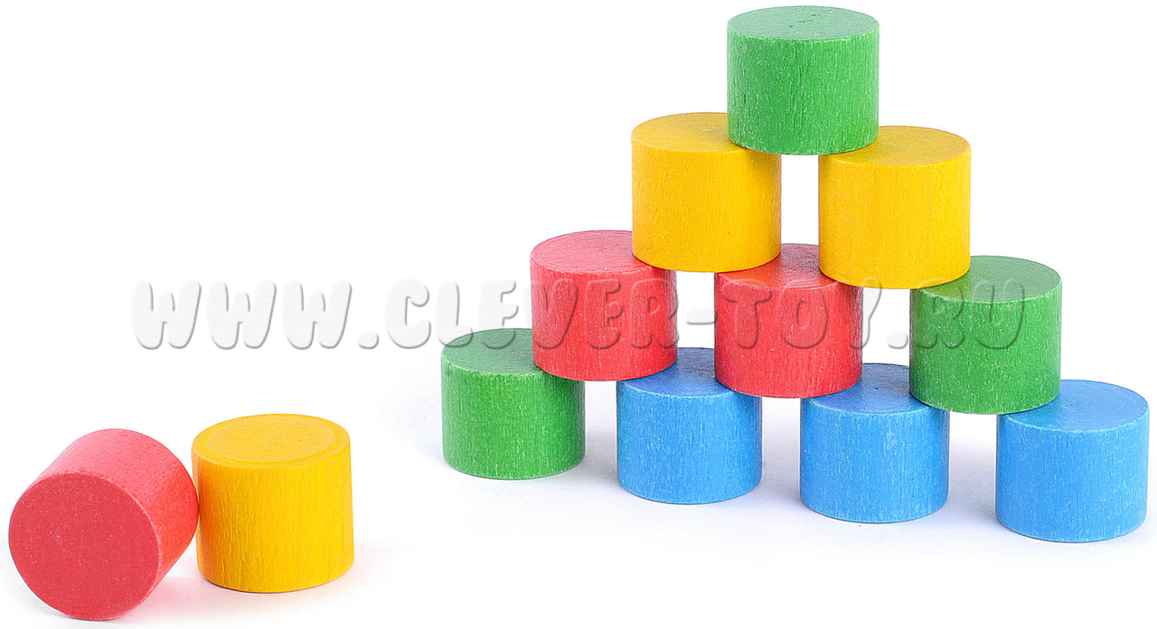 • 12 разноцветных фишек-пеньков (жёлтые, зелёные, красные, синие);