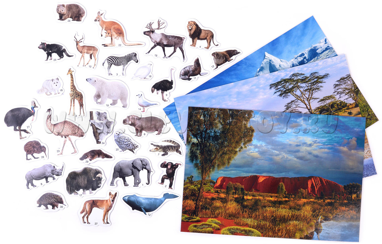 Магнитное развивающее пособие "Кто где живёт." (Африка-Арктика-Австралия)
