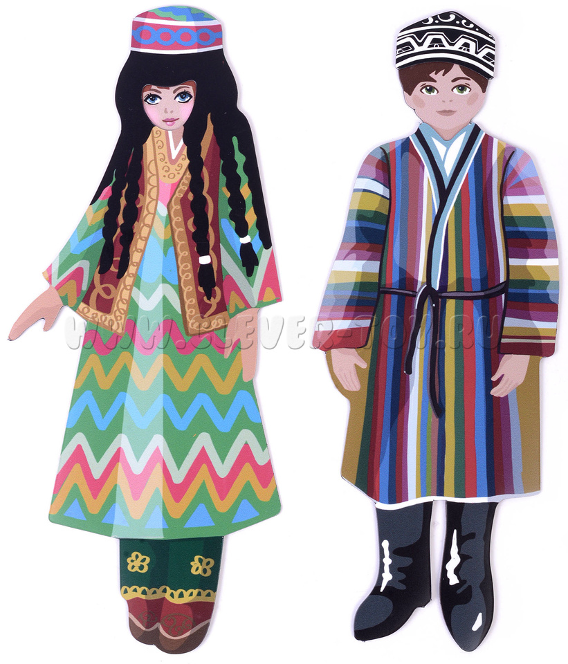 На первый взгляд, различий много. Но очень просто превратить грузина в узбека, поменяв одним движением руки магнитные карточки-костюмы. А гречанка легко станет русской девушкой, готовой пуститься в пляс с платочком в руке!