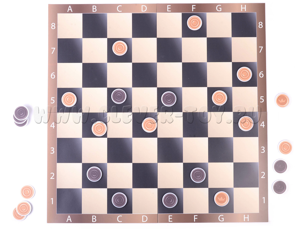 Шахматные фигуры выполнены из магнитного материала и вспененного ПВХ, что делает их объёмными и удобными в использовании.