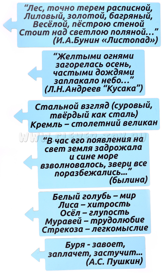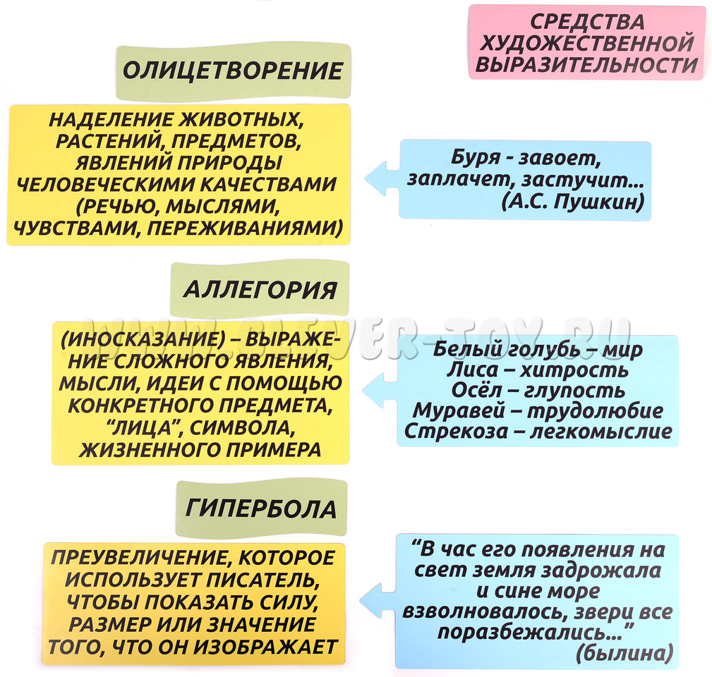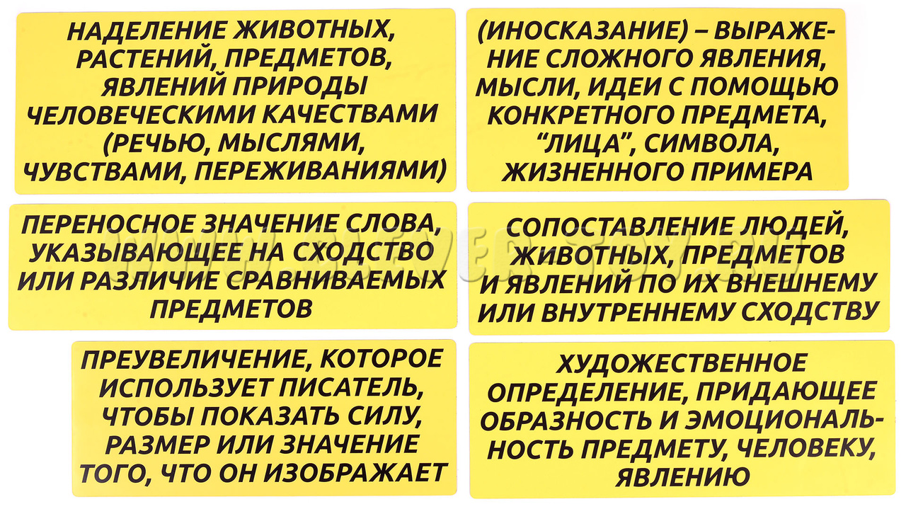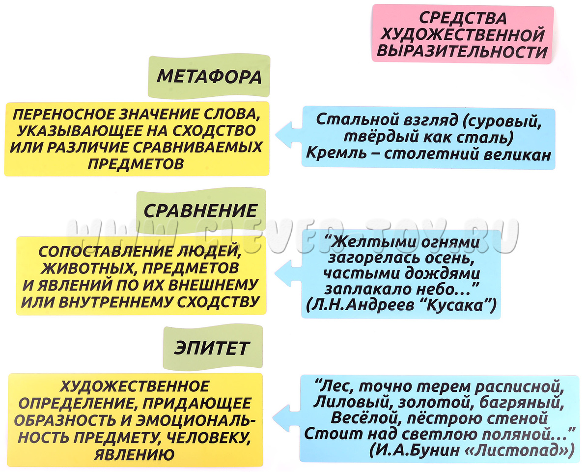 Учебное пособие, включающее в себя карточки с названиями наиболее распространенных выразительных средств, используемых при написании произведений.