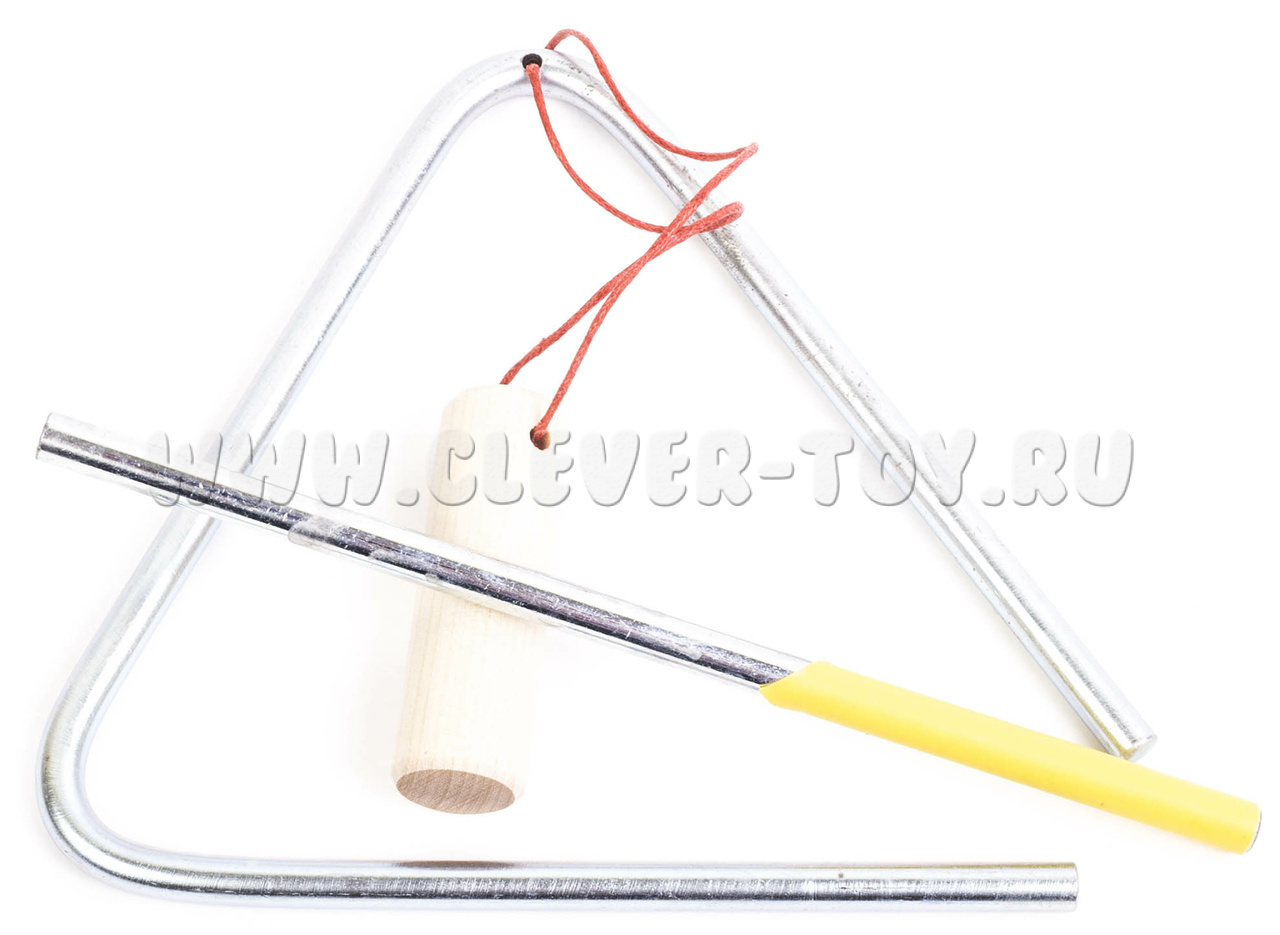 Треугольник выполнен из стали диаметром 6мм, длина стороны - 12см. Гальваническое покрытие не ухудшает качество звука и не разрушается при механическом воздействии. Ударная палочка из нержавеющей стали.