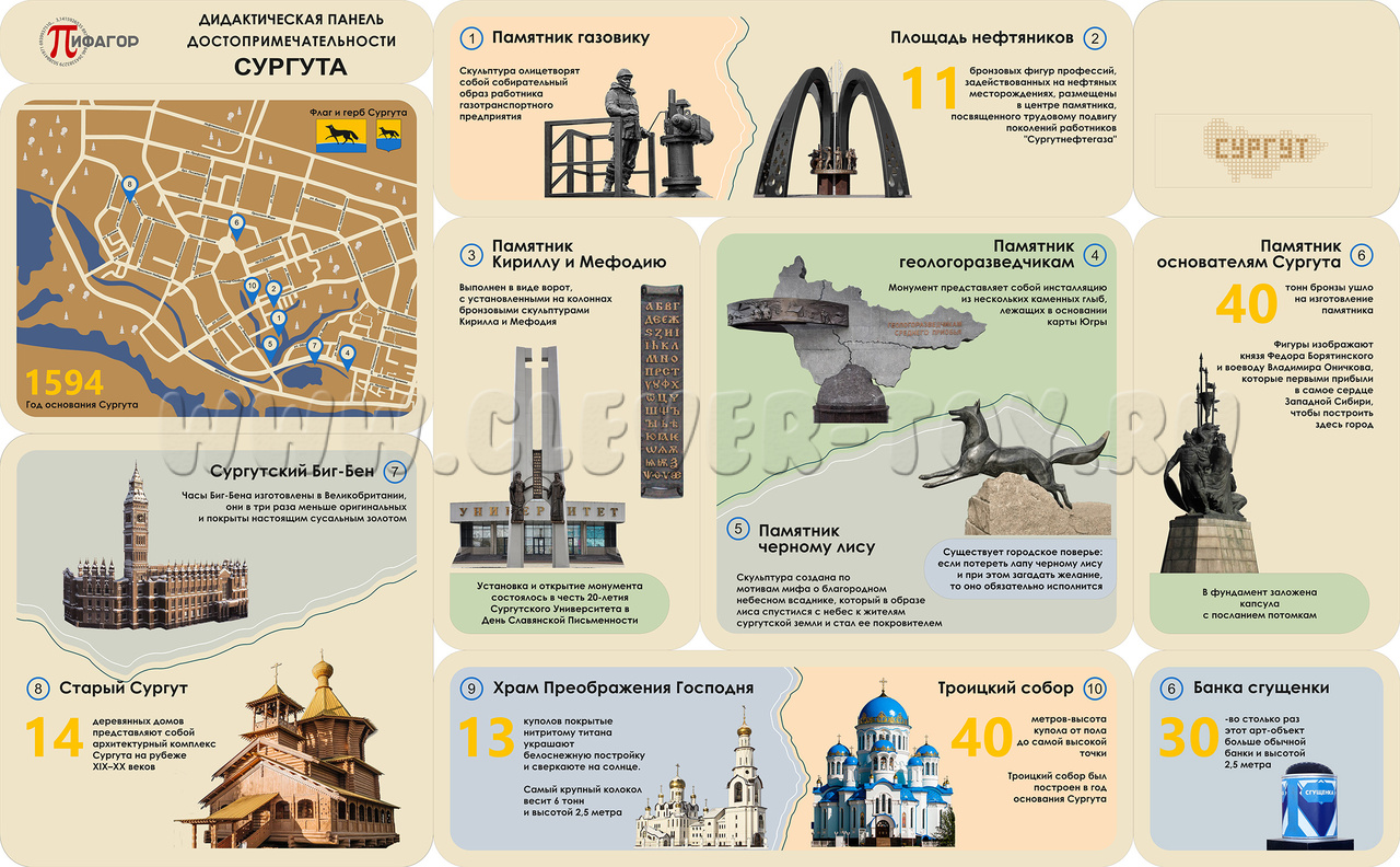 Дидактическая панель "Сургут: достопримечательности" знакомит детей дошкольного возраста с историей и культурным наследием города Сургут.