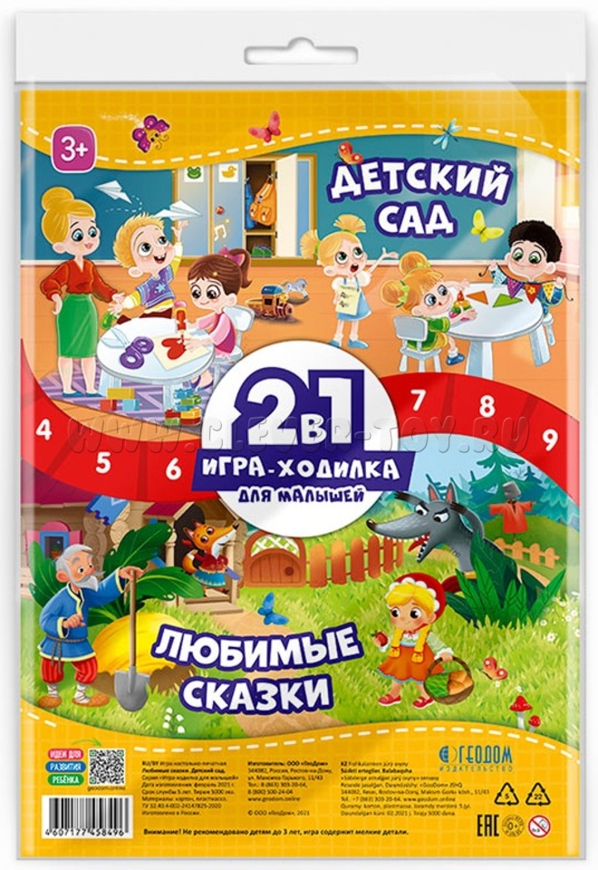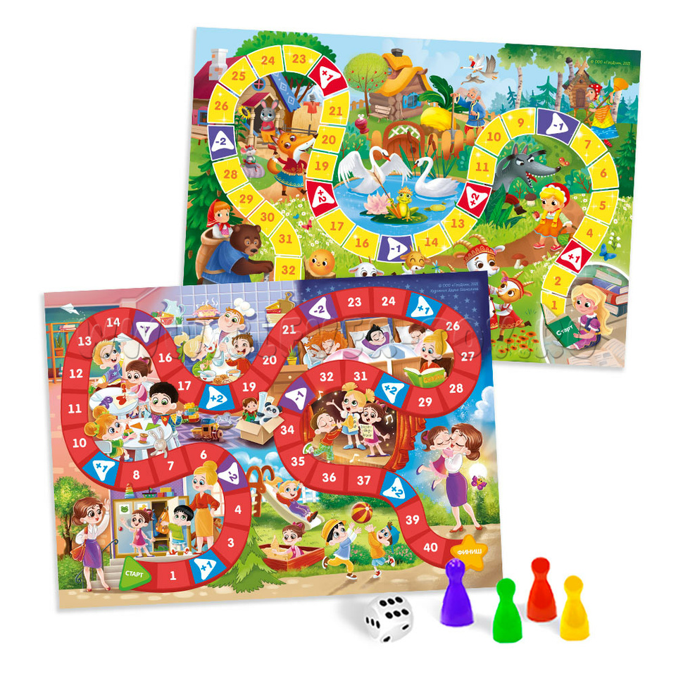Игра-ходилка с фишками для малышей 2в1 "Любимые сказки+Детский сад"