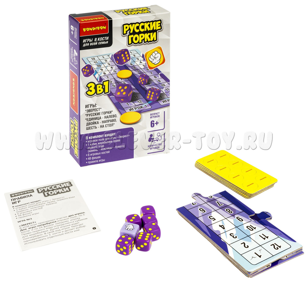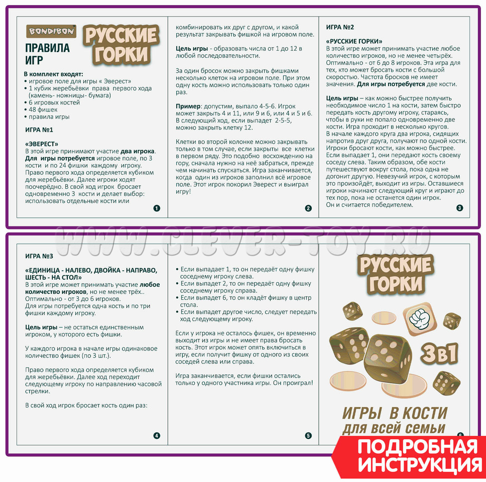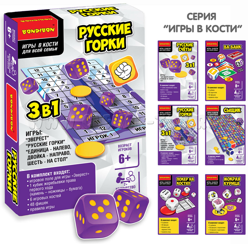 Настольная игра в кости "Русские горки" 3в1 с игровым полем и фишками.