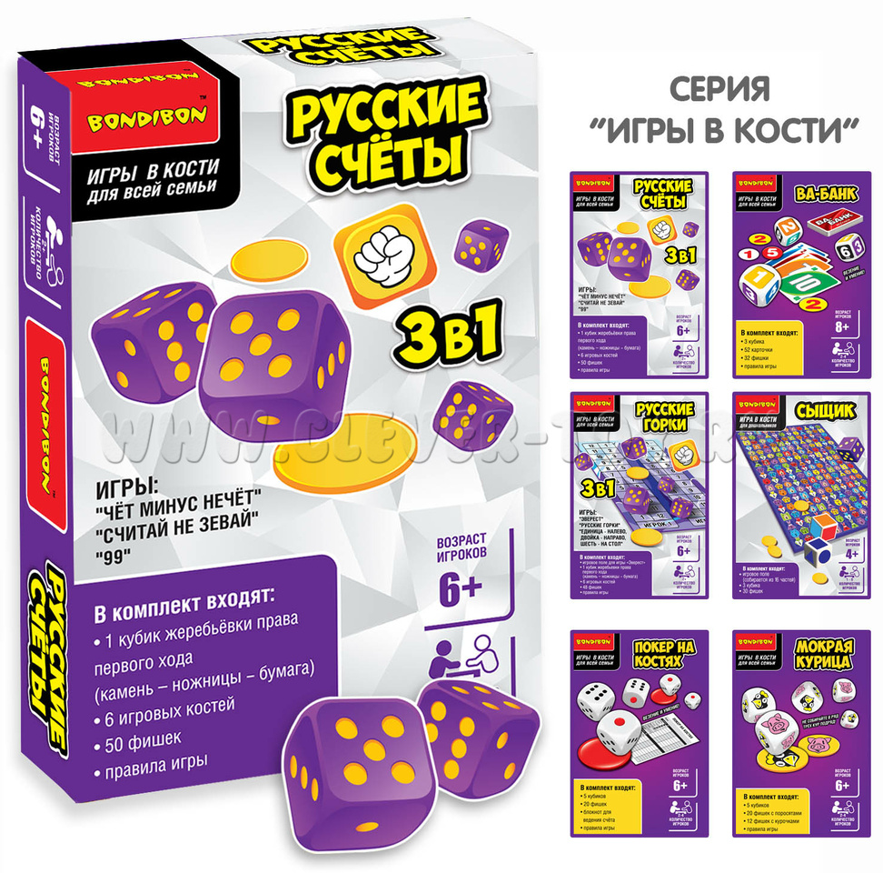 Настольная семейная игра в кости 3в1 "Русские счёты"