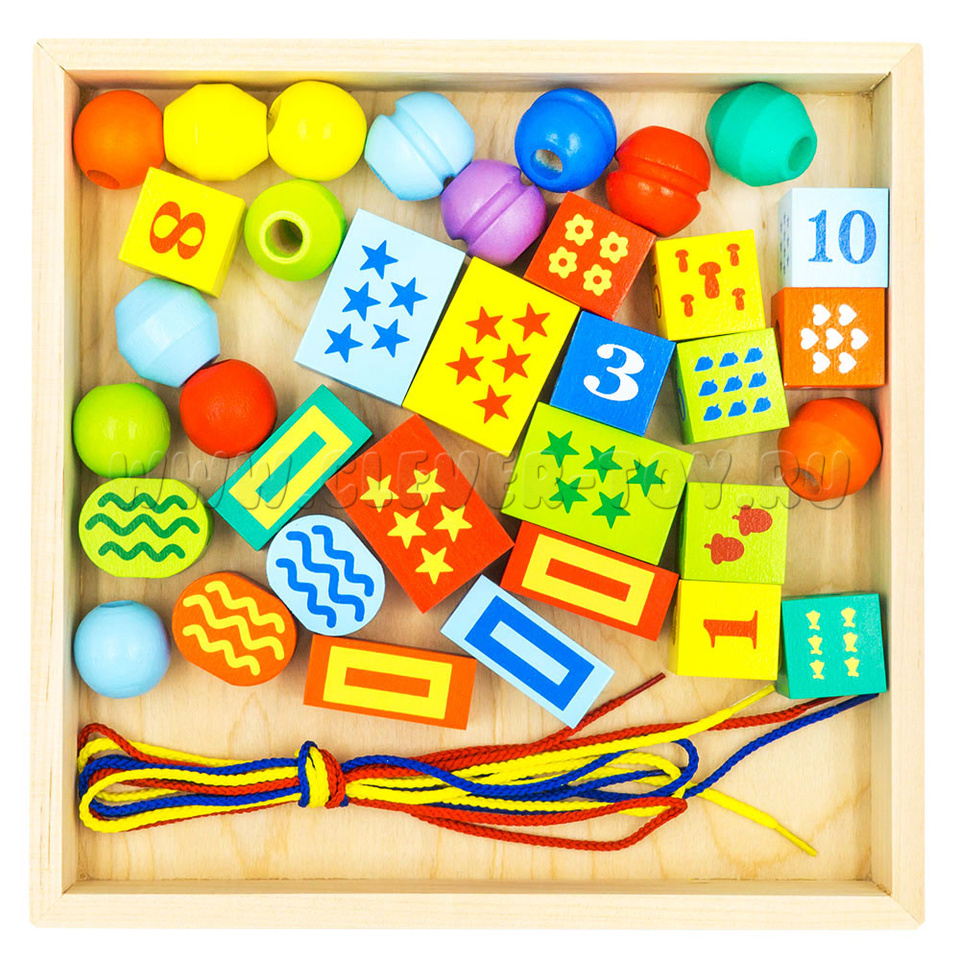 Конструктор "Шнуровочка" (35 деталей, 3 шнура, деревянная коробка)