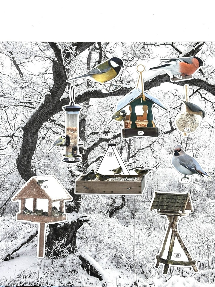 В комплекте к плакату идут магнитные карточки, объединённые по разным темам: "Кто такие птицы?", "Как помочь птицам зимой? Развешиваем кормушки", "Что едят птицы зимой?", "Перелётные птицы" и другие.
