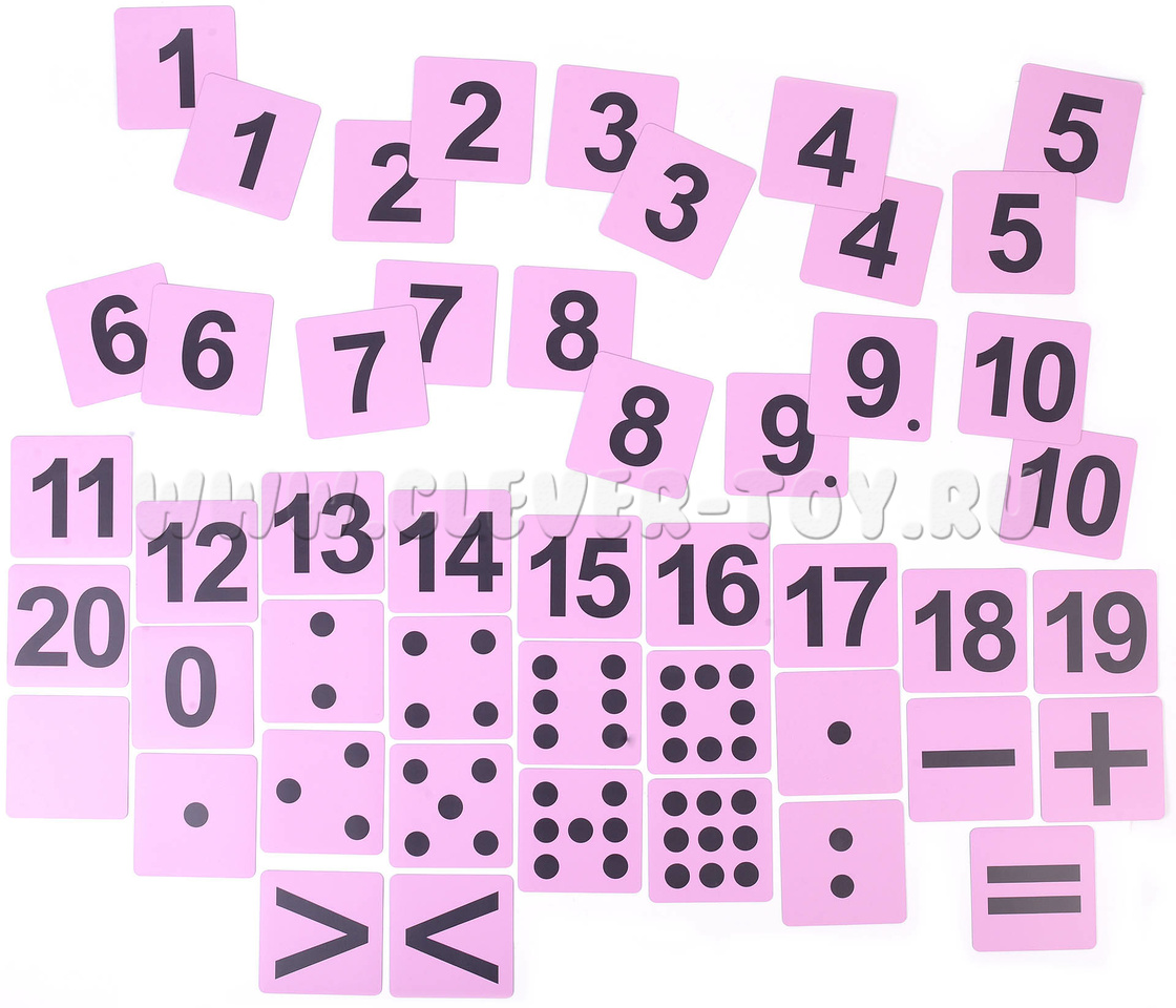 Формат карточек 8 см х 8 см, что позволяет хорошо разглядеть цифры даже с последней парты.