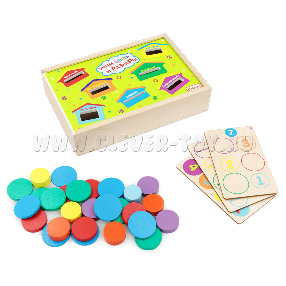 Сортер "Учим цвета и размеры" (28 деталей, 3 карточки с заданиями)