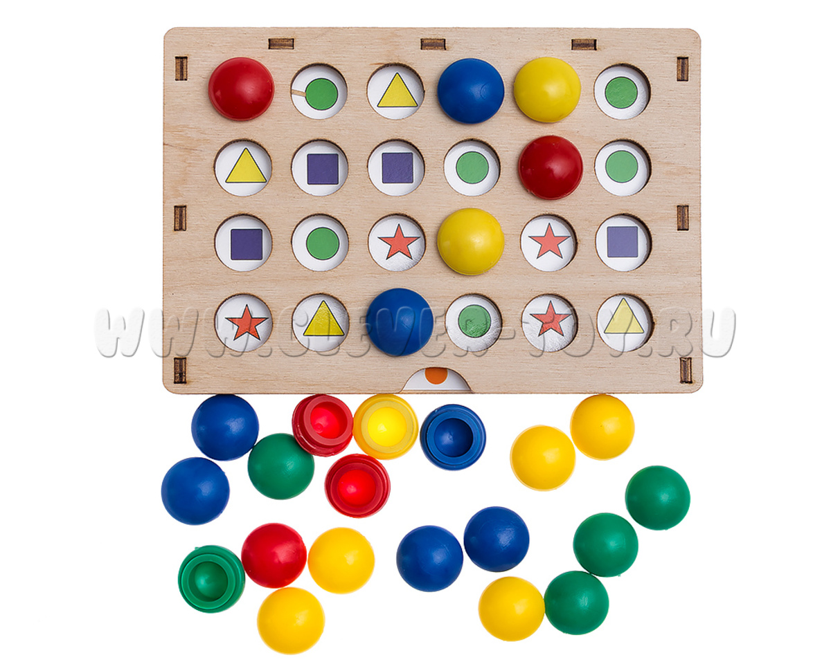 6 вариантов игры! Размер планшета: 11*16 см. Состав набора: деревянный планшет - 1 шт; пластмассовые фишки - 32 шт; ламинированные карточки - 8 шт.
