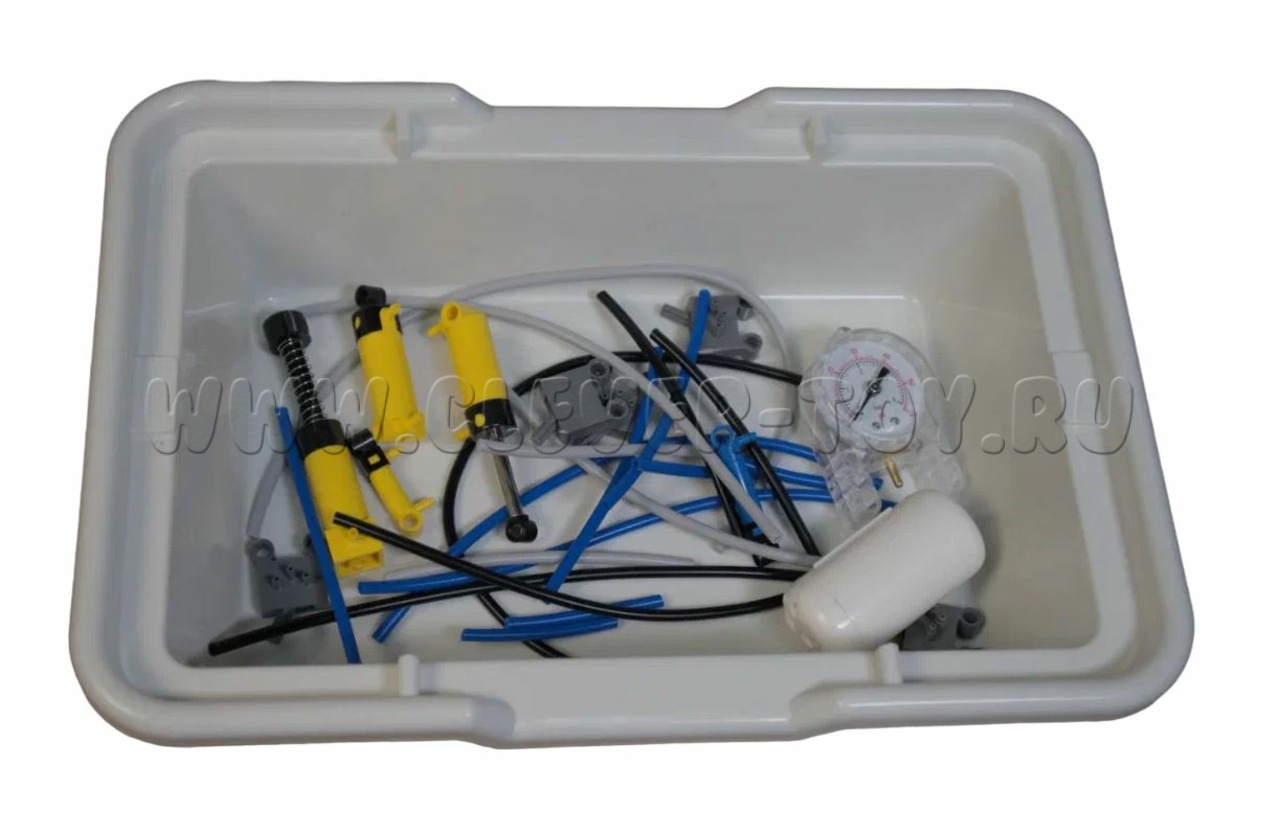- В набор входят насосы, пневмоцилиндры, воздушные клапаны, воздушный баллон и манометр