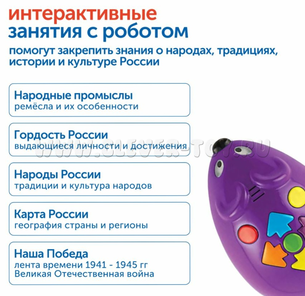 Комплект "Национальный культурный код" с РобоМышью представляет собой интерактивный инструмент для детского сада, который знакомит детей с культурой России через игру и развивает ключевые навыки дошкольников.