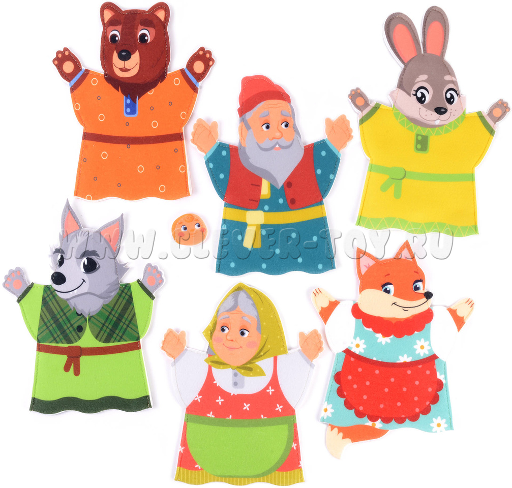 Набор «Колобок» — это комплект для домашних театральных представлений и обучающих игр. С его помощью можно заниматься с детьми разных возрастов индивидуально или в группе. В наборе есть персонажи: дед, баба, колобок, волк, заяц, медведь и лиса. Их используют во время чтения книги, чтобы оживить сказку. Пусть ребёнок самостоятельно показывает, как прыгает зайчик, крадётся лисичка и катится колобок. Размер персонажей: 23 см.
