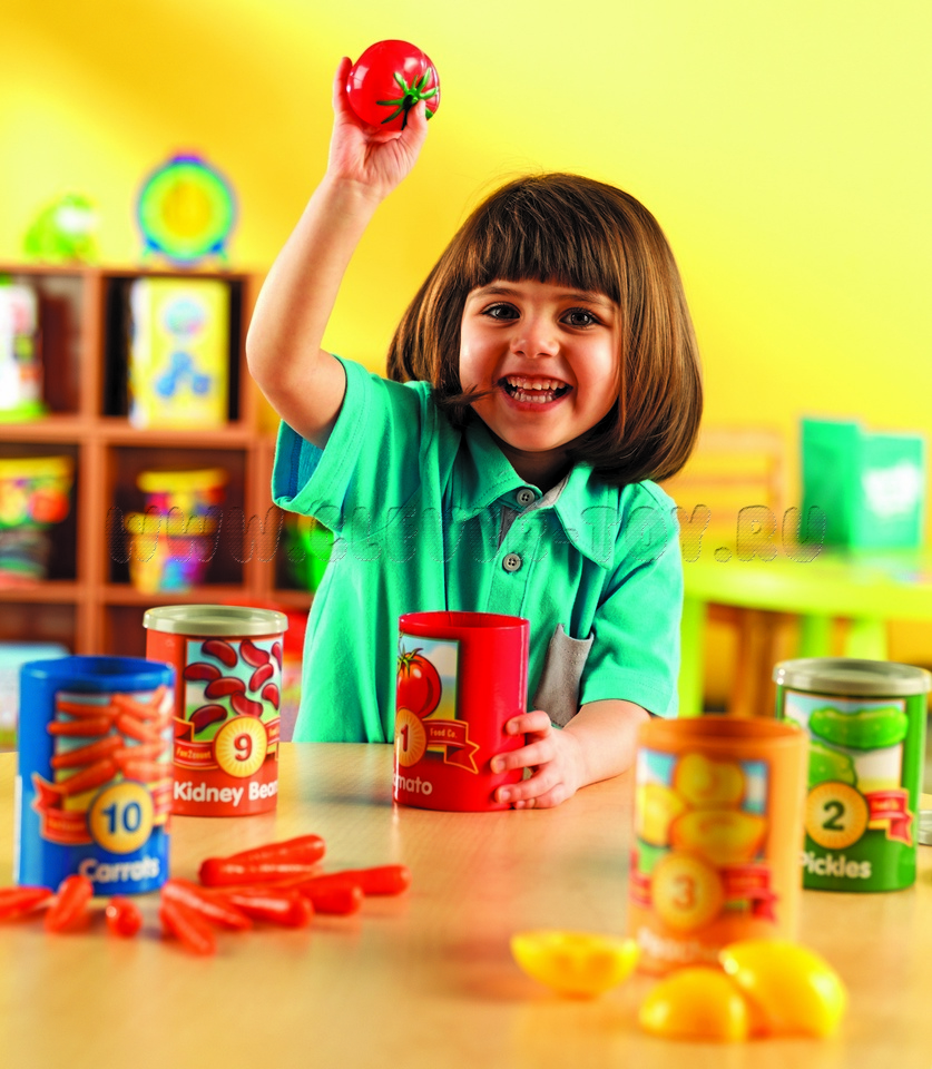 Набор "Консервы" предназначен для развития навыков счета, обучает распознаванию чисел, сортировке по определенному признаку, способствует развитию речи и мелкой моторики, расширяет словарный запас.